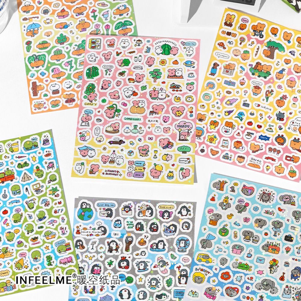 6종 삐뚤 빅사이즈 씰스티커 감성 키치 빈티지 다꾸 다이어리 꾸미기