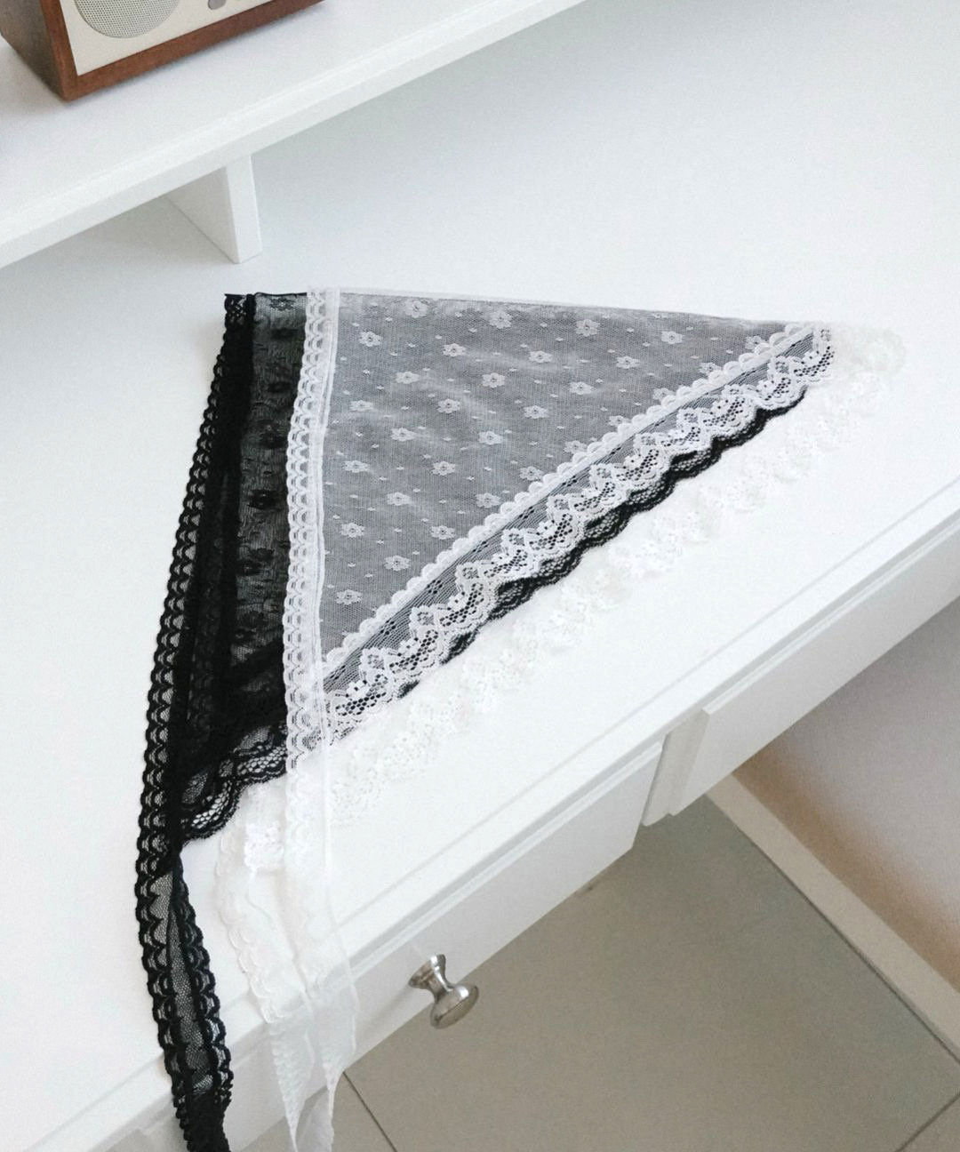 비블라썸 BH1984 플라워 레이스 시스루 헤어 커치프 망사 삼각 스카프 두건 데일리 캐주얼