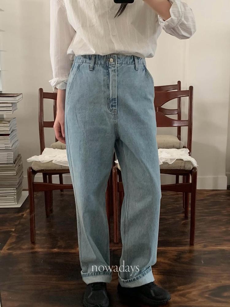 jinsim 진심 마틴 데님 팬츠 코튼 일자 와이드 연청 청바지