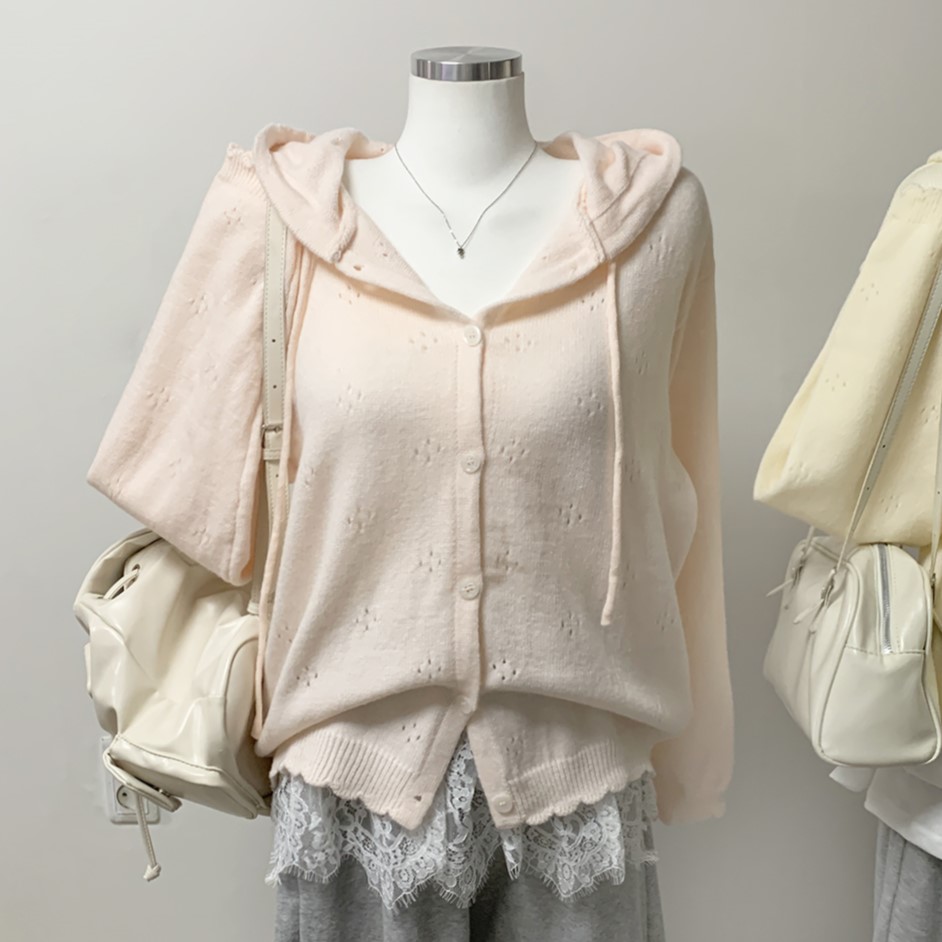 [러블리무드/봄가디건] 펀칭 후드 프릴 물결 밑단 루즈오버핏 봄옷 가디건