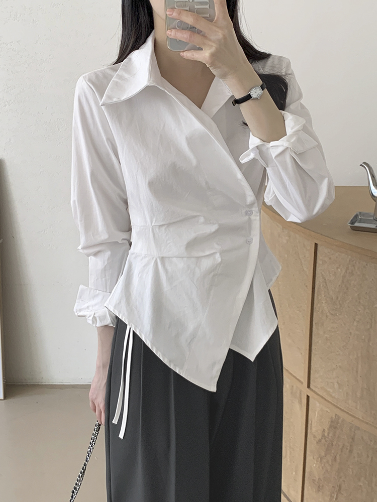 [스트라이프, 무지] 리에트 랩 셔츠 블라우스
