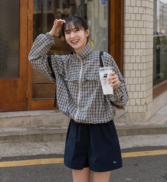 5DA31167NN_러블리한 프릴 체크 경량점퍼