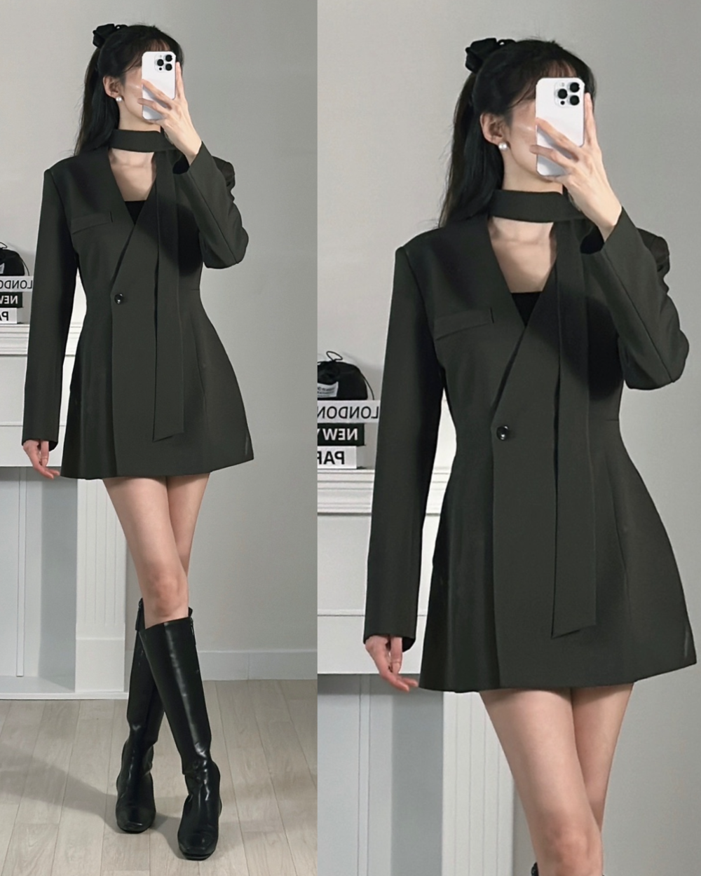 [인스타 주문폭주🔥] 메잇 원피스형 자켓 타이 롱 A라인 오버사이즈 봄 253 하객룩 결혼식룩