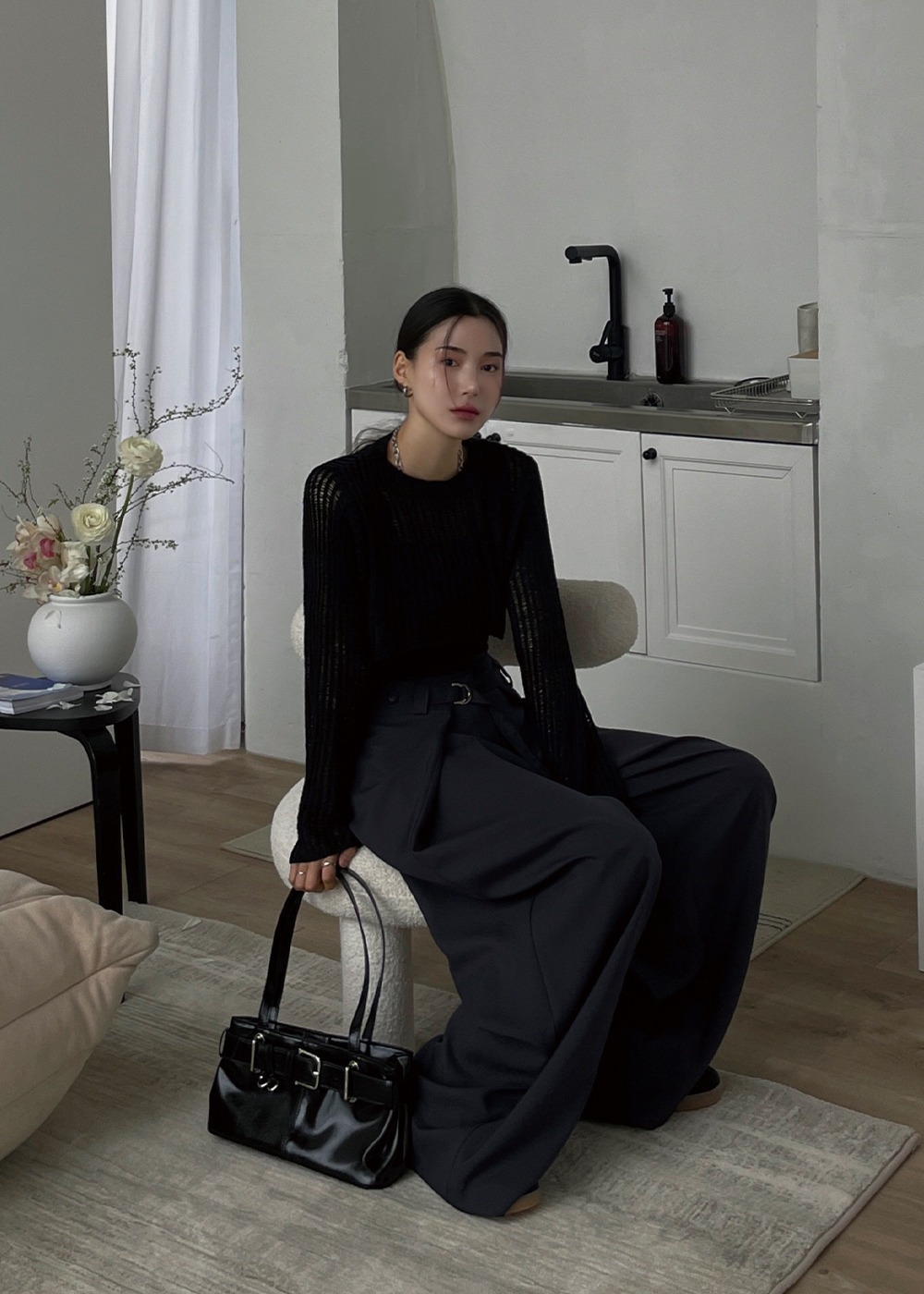 퓨어 메쉬 크롭 니트 (3color) 0357