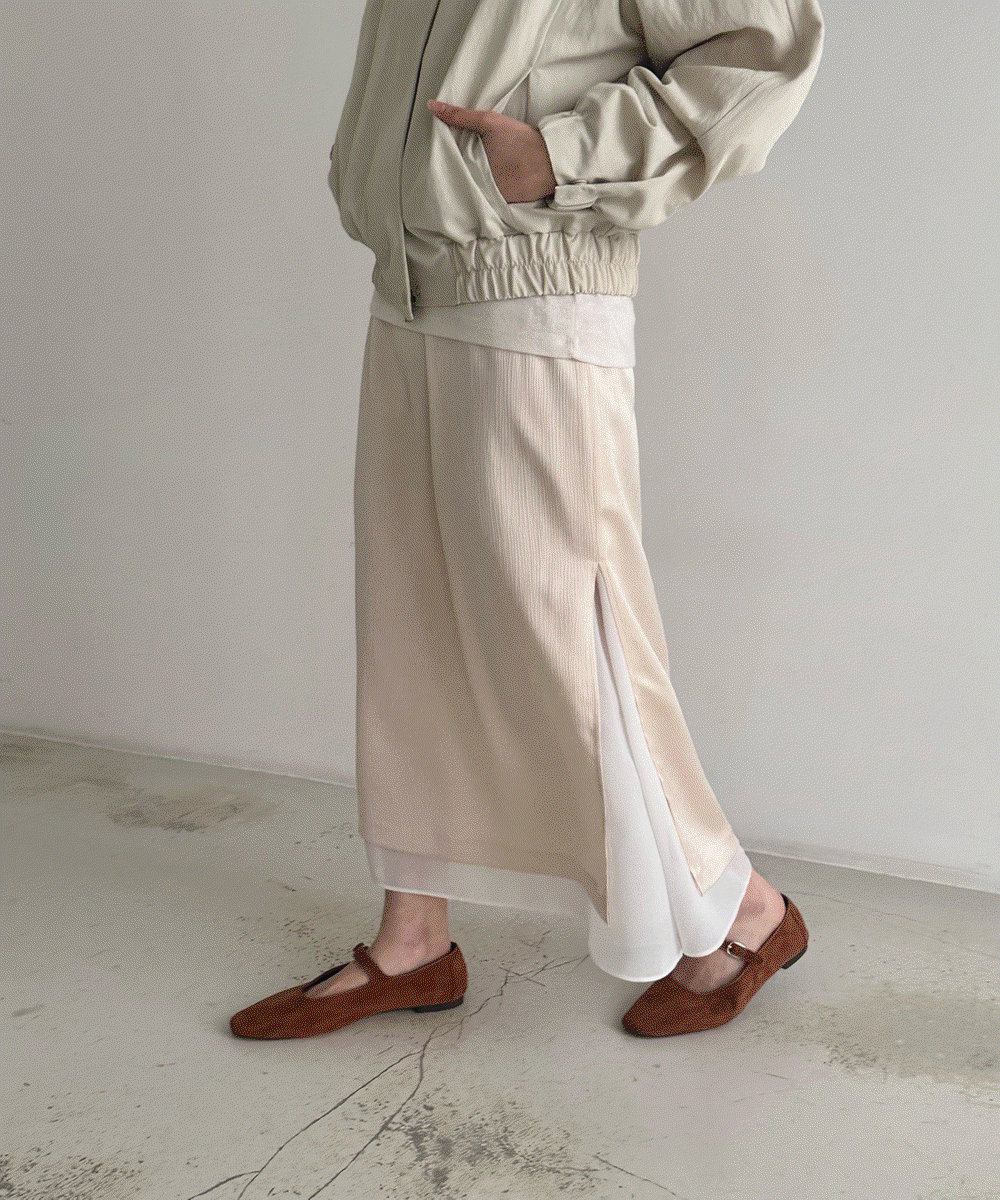 쉬폰 배색 밴딩 롱 스커트(2color)