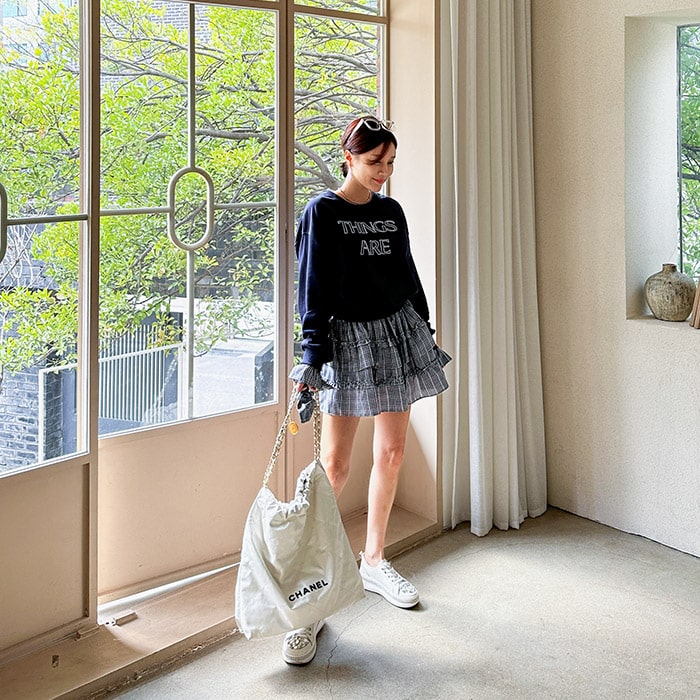 체크레터링 투피스(헤어끈 set)