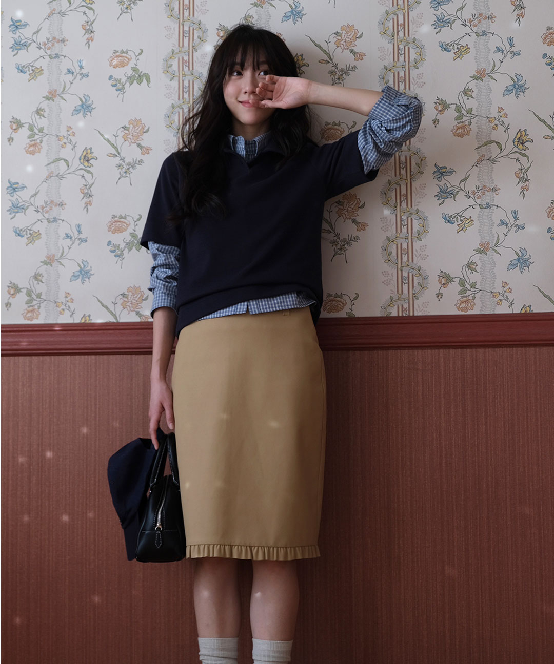 PREFRITT : Nottingham suede frill midi sk [camel]
