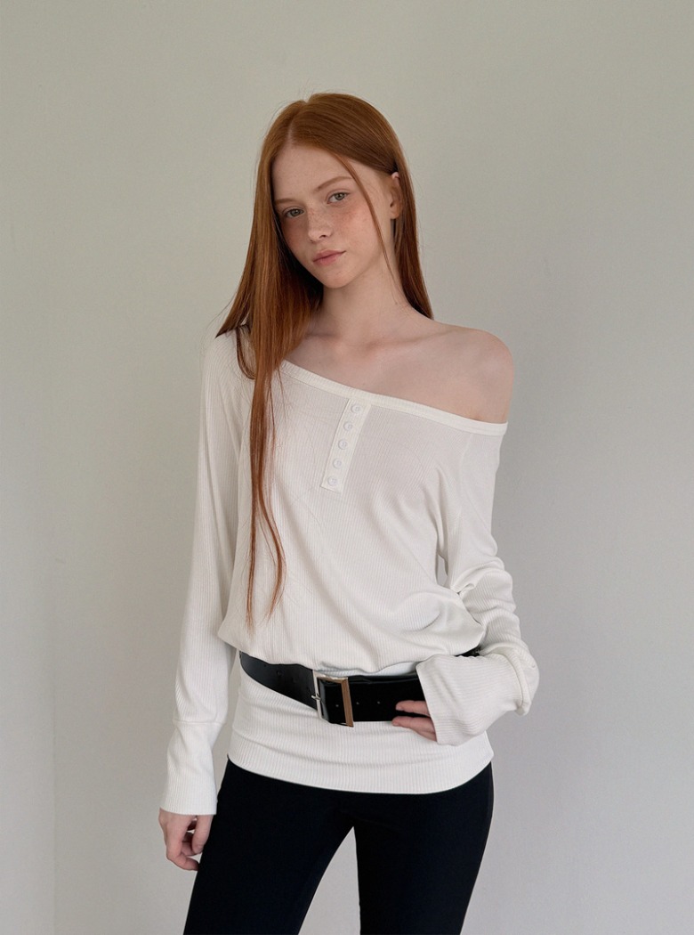[온라인단독]베인 언발 숄더 빅벨트 티셔츠