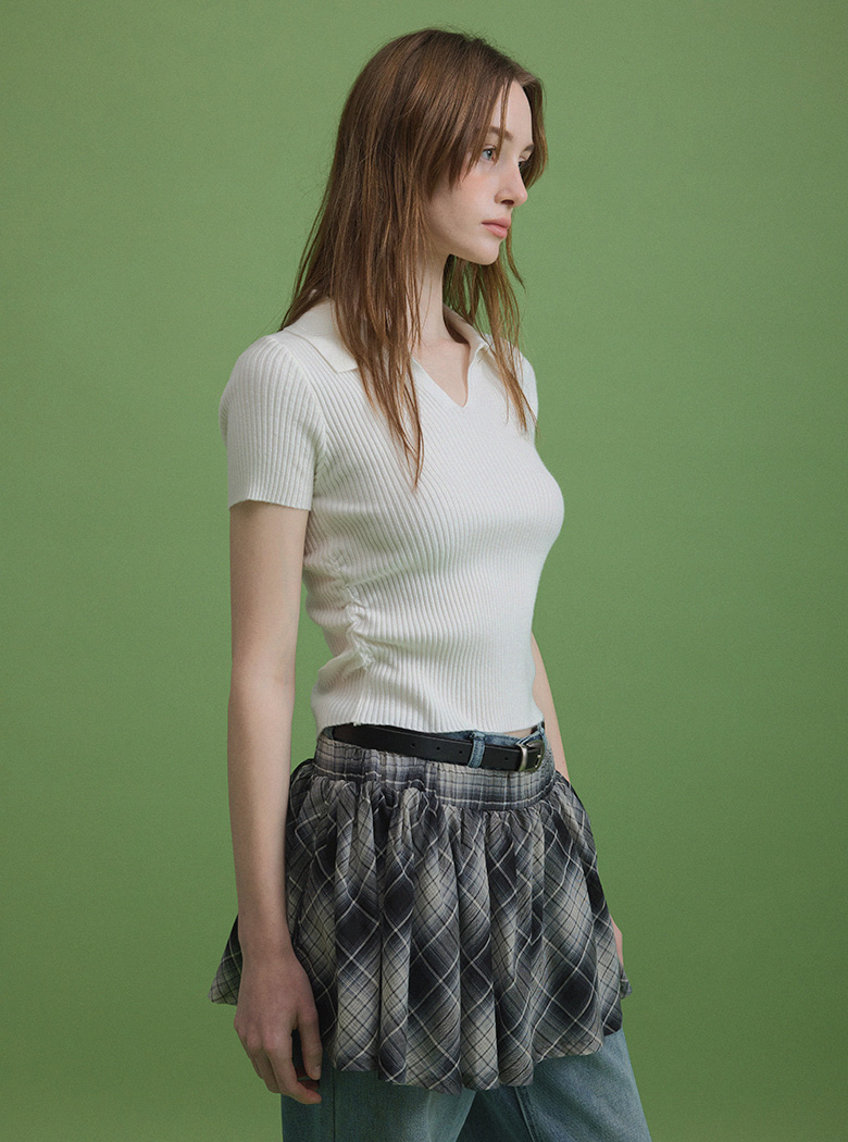 [송수이착용] 플로이 카라 셔링 크롭 니트