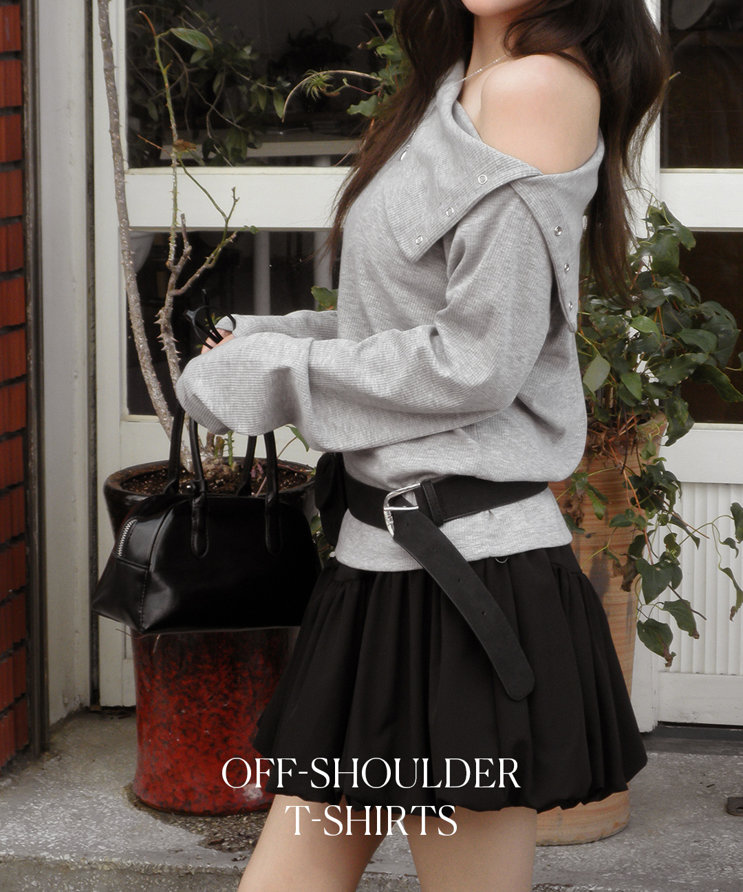 [-5kg/여리핏] 데린 오프숄더 골지 티셔츠 (44~66) (오프숄더티-긴팔티셔츠-골지티셔츠-발레코어-여리핏티셔츠-루즈핏티셔츠-스판티셔츠-하객룩-사계절템)