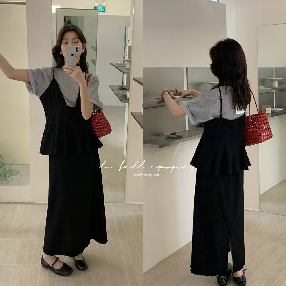 체스 핀턱 슬림 뷔스티에 블라우스 스커트 투피스