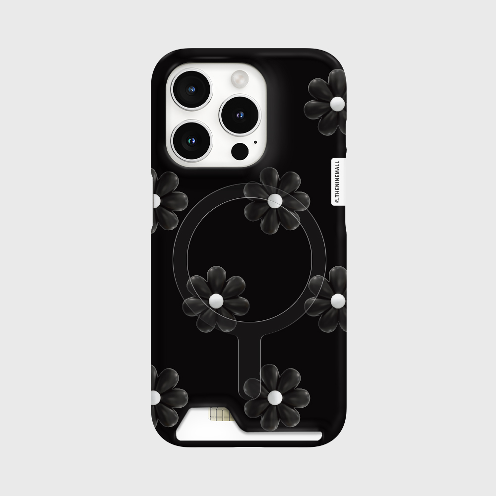 black marguerite flower pattern 맥세이프 카드 폰케이스 아이폰 16 프로 하드