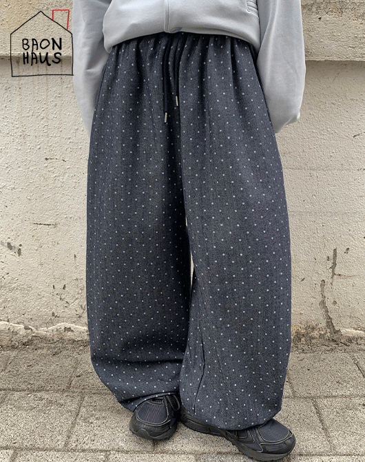 [BAONHAUS] 코티카 도트 데님 벌룬 밴딩 와이드 팬츠