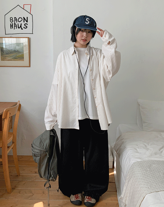 [단독][BAONHAUS] 아오리 코튼 스트라이프 오버핏 셔츠 (2color)