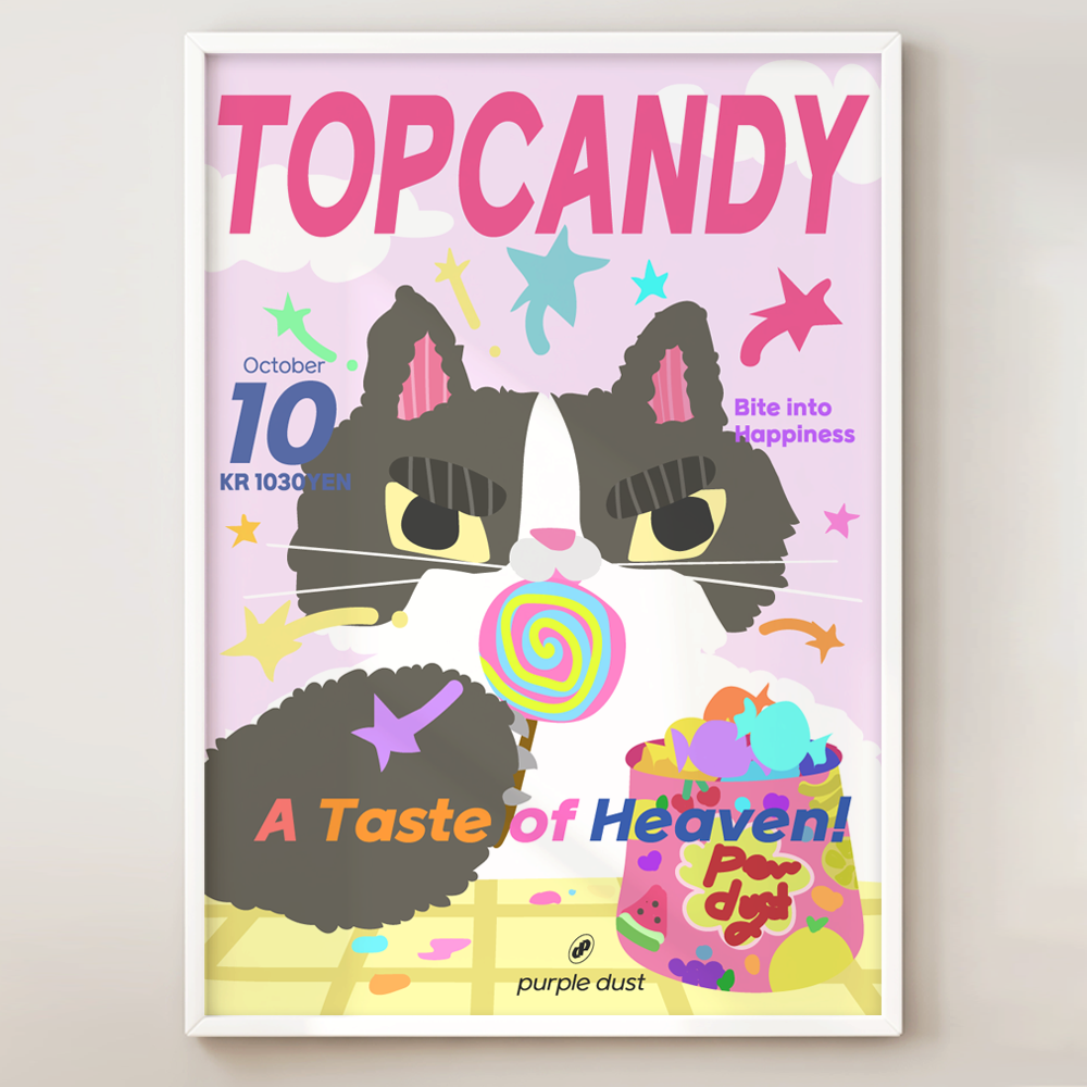 사탕 그림 고양이 포스터 캔디 롤리팝 액자 인테리어 소품 캣 꾸미기