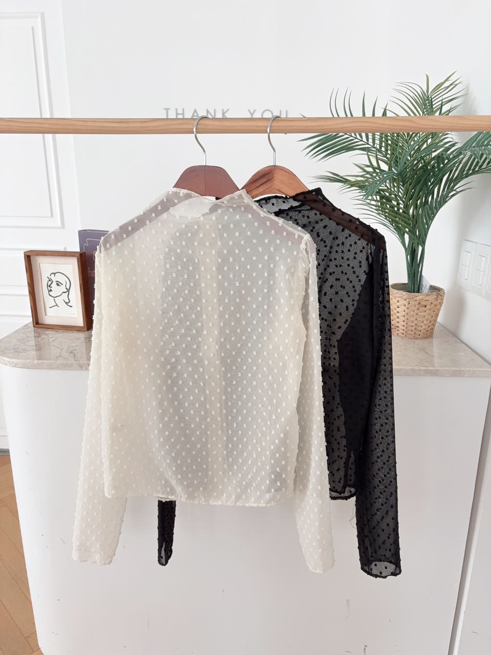 [땡큐]뮤스 눈꽃 단추 투웨이 시스루 블라우스(2color)M-849