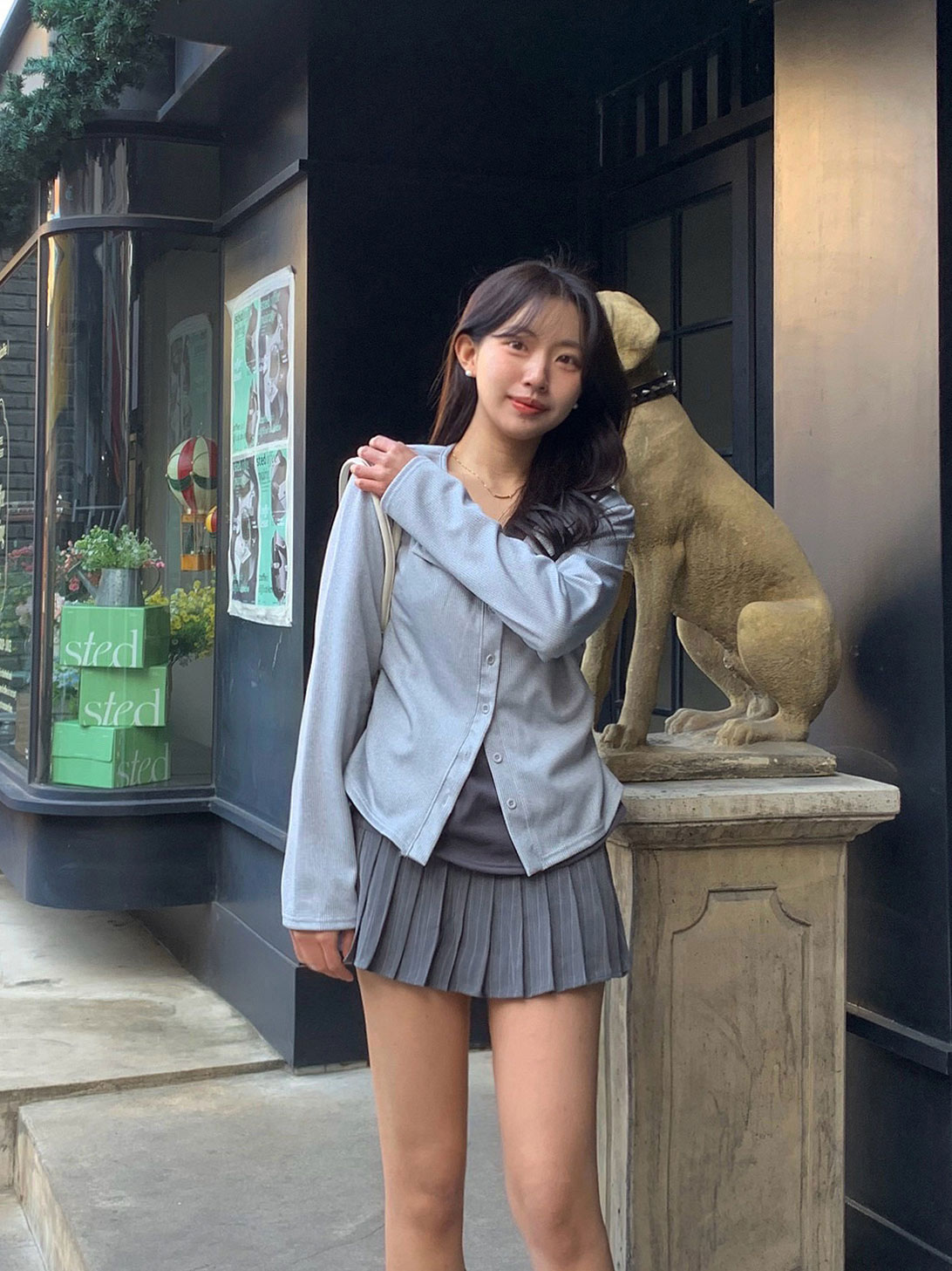[EFT.] 핀유 배색 레이어드 투피스 가디건 (일체형)