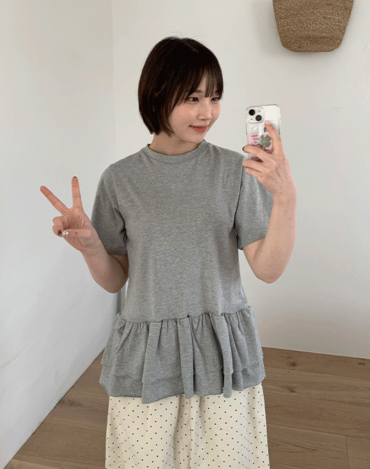 브이민 컬러 프릴 캉캉 반팔 티 (8color)