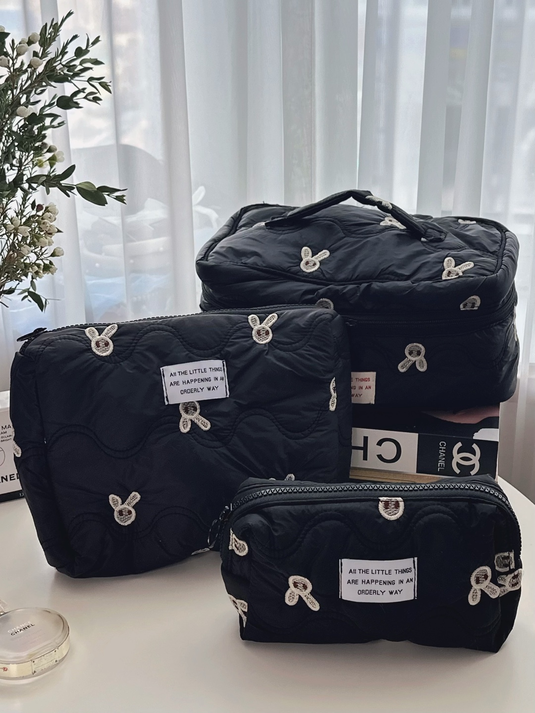 [생활방수/고퀄]🖤토끼 자수 생활 방수 퀼팅 누빔 천 필통 대형 화장품 휴대용 파우치 케이스