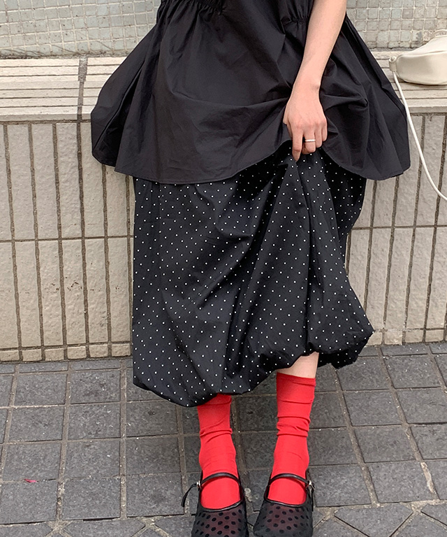 [4천장판매/MADE] 셸리 도트 롱 벌룬 스커트