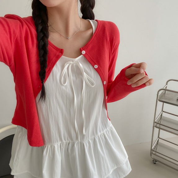 홍시아일렛미니CD(3c) 펀칭가디건 미니가디건 라운드가디건 버튼가디건 자가드가디건 레드가디건