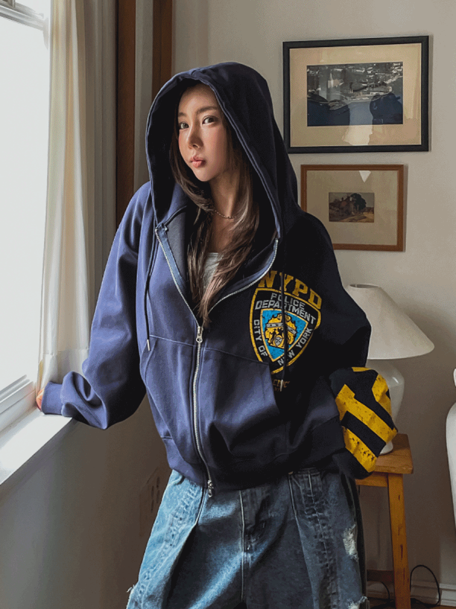 폴리스 세미크롭 오버 프린팅 후드집업