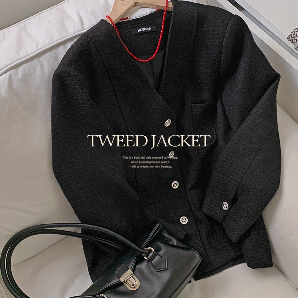 [하객룩추천💐][MADE] 오브데 노카라 브이넥 루즈핏 트위드 자켓(44~110) (하객룩자켓-빅사이즈아우터-긴팔자켓-하프자켓-스티치봉제-간절기코디-드뮤어룩-결혼식코디-격식룩-모임룩-상견례룩)