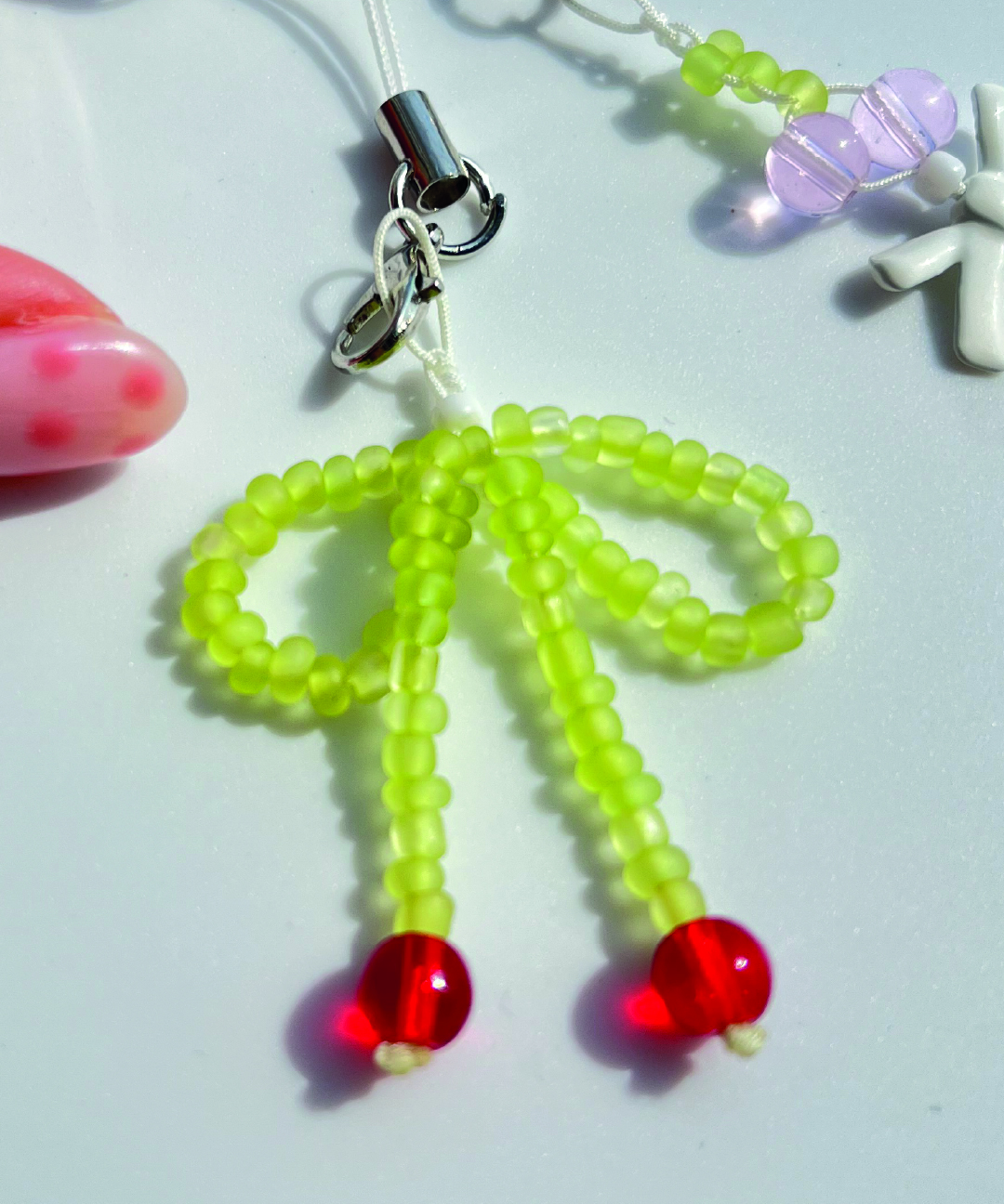 [키링 추천 핸드메이드] 행운의 리본 체리 키링_lucky ribbon cherry keyring 핸드폰 고리 백꾸 폰꾸 에어팟 파우치 귀여운 비즈 키링 자체 제작 액세서리