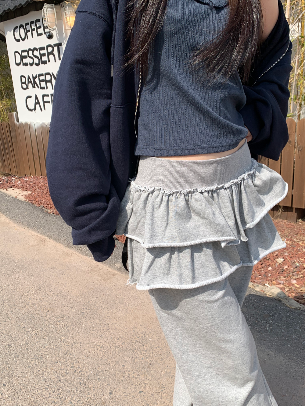 [치마바지] 프릴 캉캉 레이어드 스커트 트레이닝 밴딩 팬츠 2color
