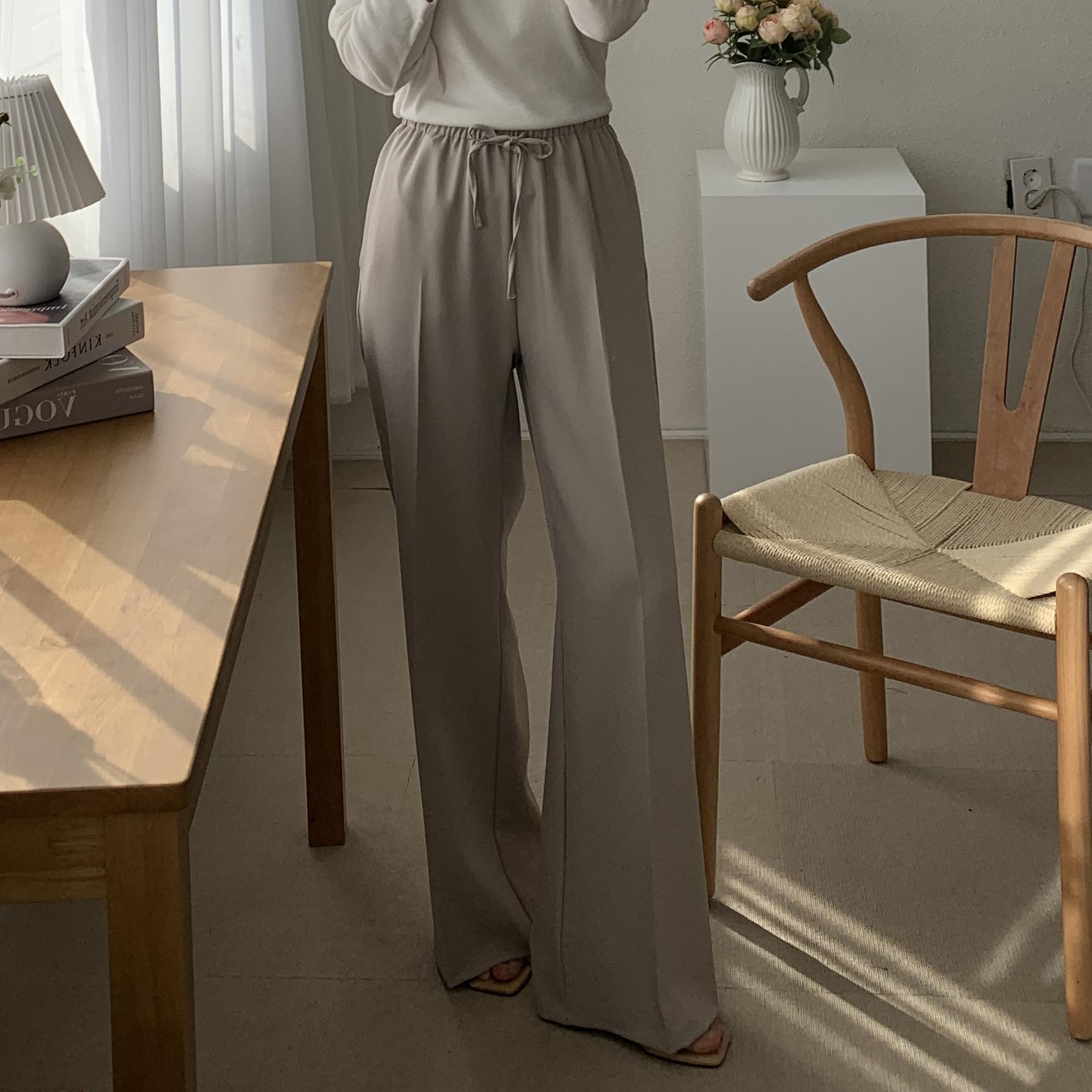 3단기장[~3XL✨구김적은 소재] 하이웨스트 밴딩 스트링 와이드 슬랙스/와이드팬츠/밴딩팬츠/하이웨스트바지/밴딩슬랙스/빅사이즈/키작녀/키큰녀/롱팬츠/t8007