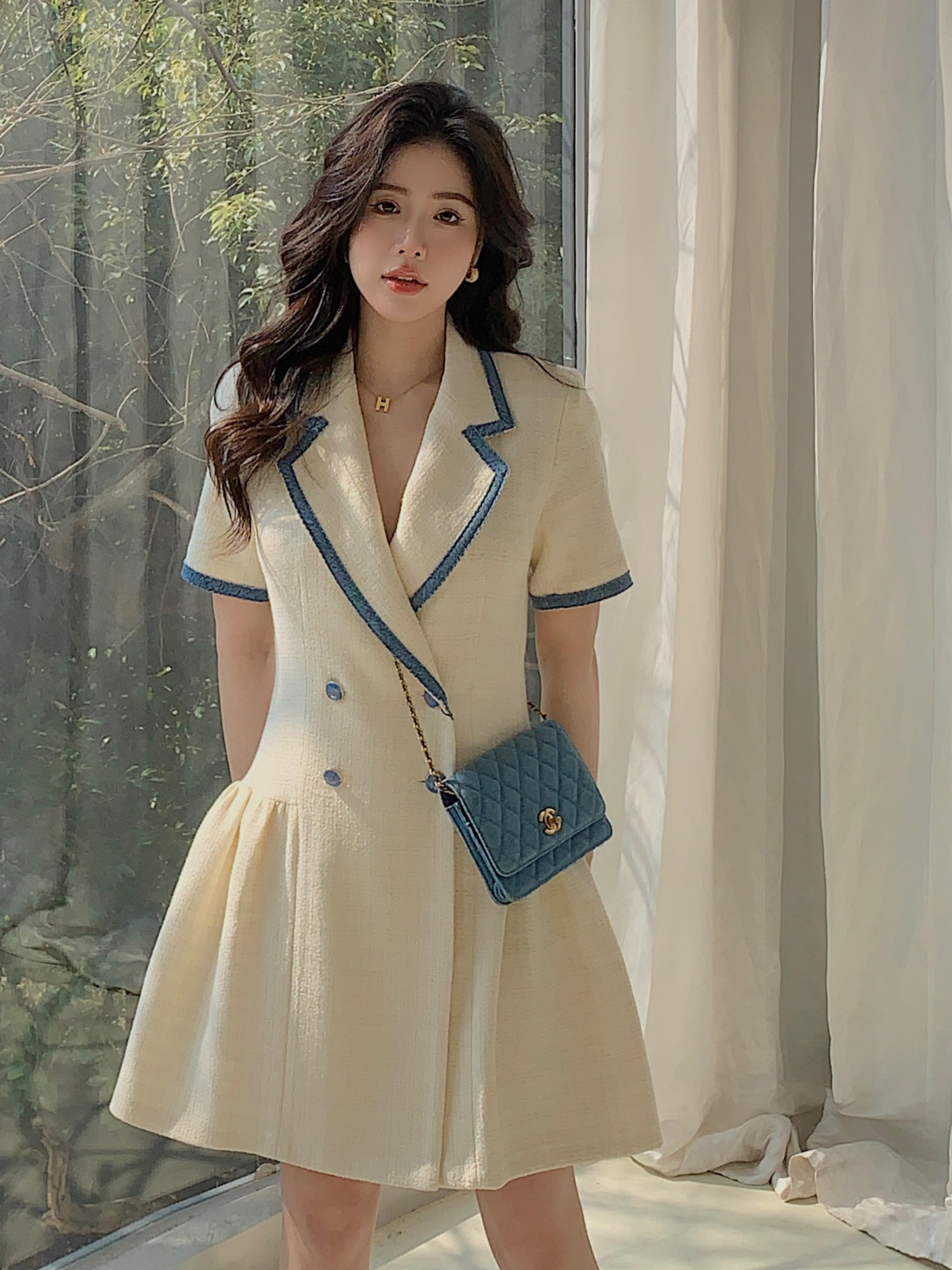 [수입] 센스 블레이즈 트위드 카라 원피스
