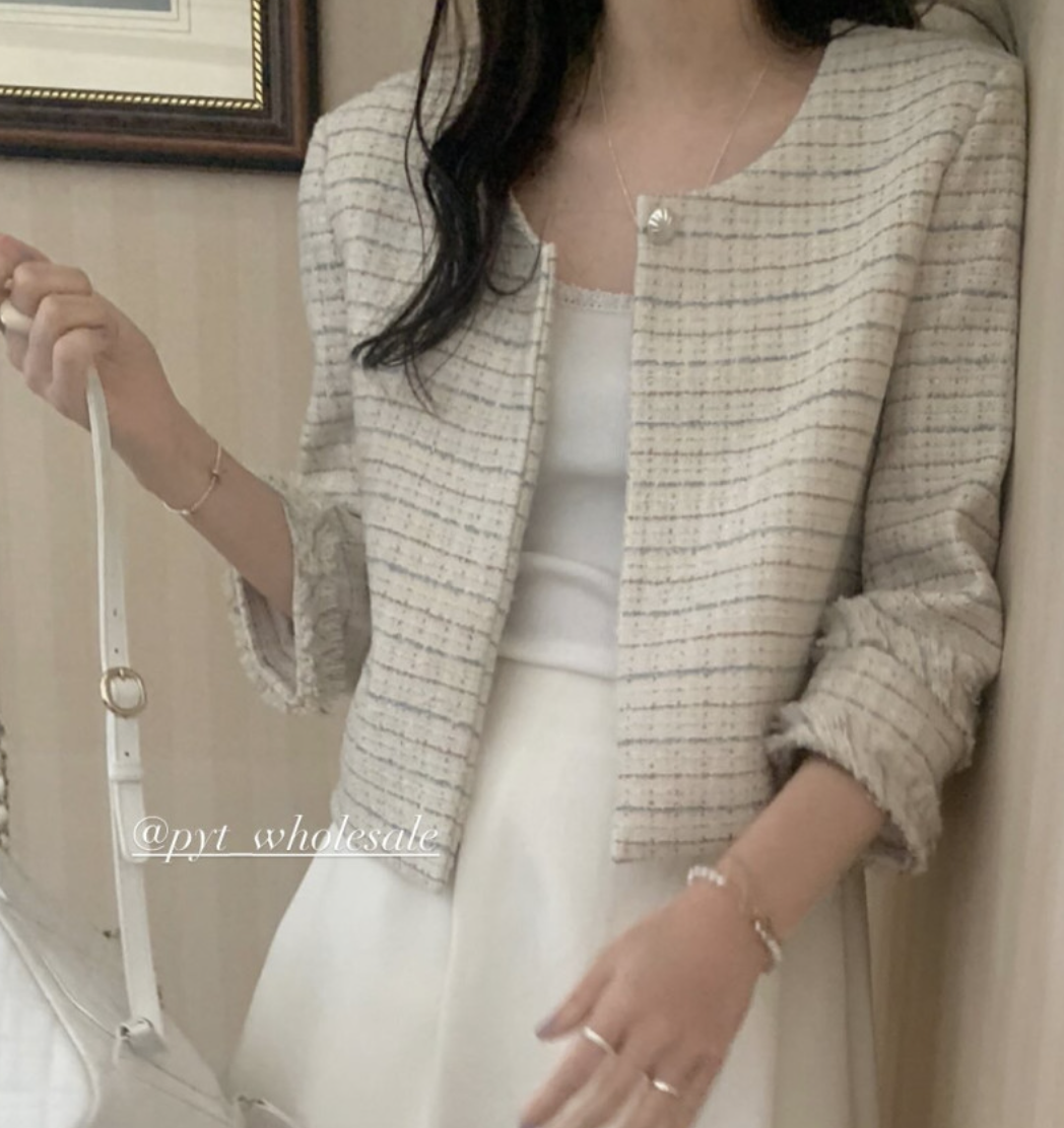 [🌸하객룩] 프리티영띵 노벨라 트위드 봄 노카라 체크 자켓 2color