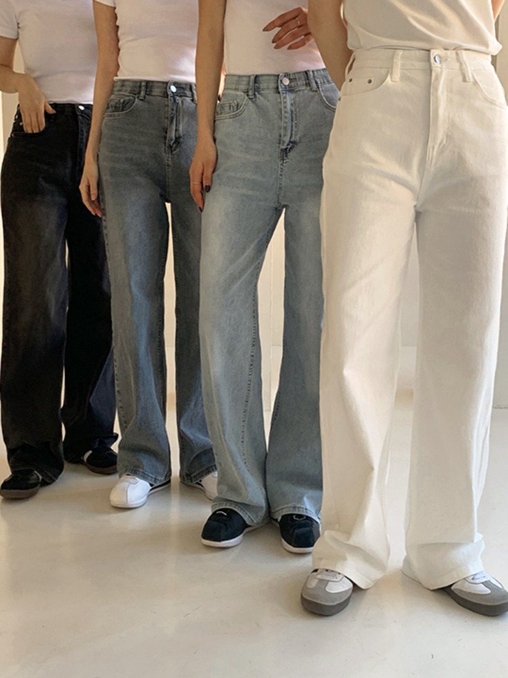 [25-34] 프리디몬 스판 속밴딩 와이드 데님 팬츠 청바지 (신상-봄-가을-겨울-하객룩-출근룩-데일리룩-대학생룩-청바지룩-꾸안꾸룩-빅사이즈-34사이즈)