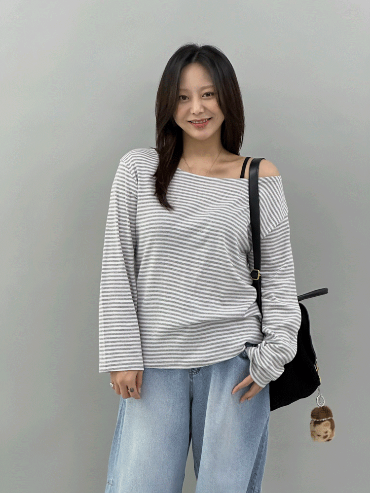 1859 루즈핏 단가라 라운드넥 티셔츠[3color/44-88]