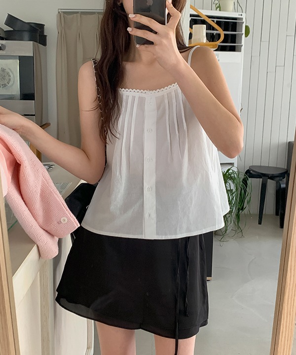 [여름신상] 포지브 레이스 나시 블라우스 - 2 Color (크롭/슬리브리스/펀칭/민소매/레이어드)