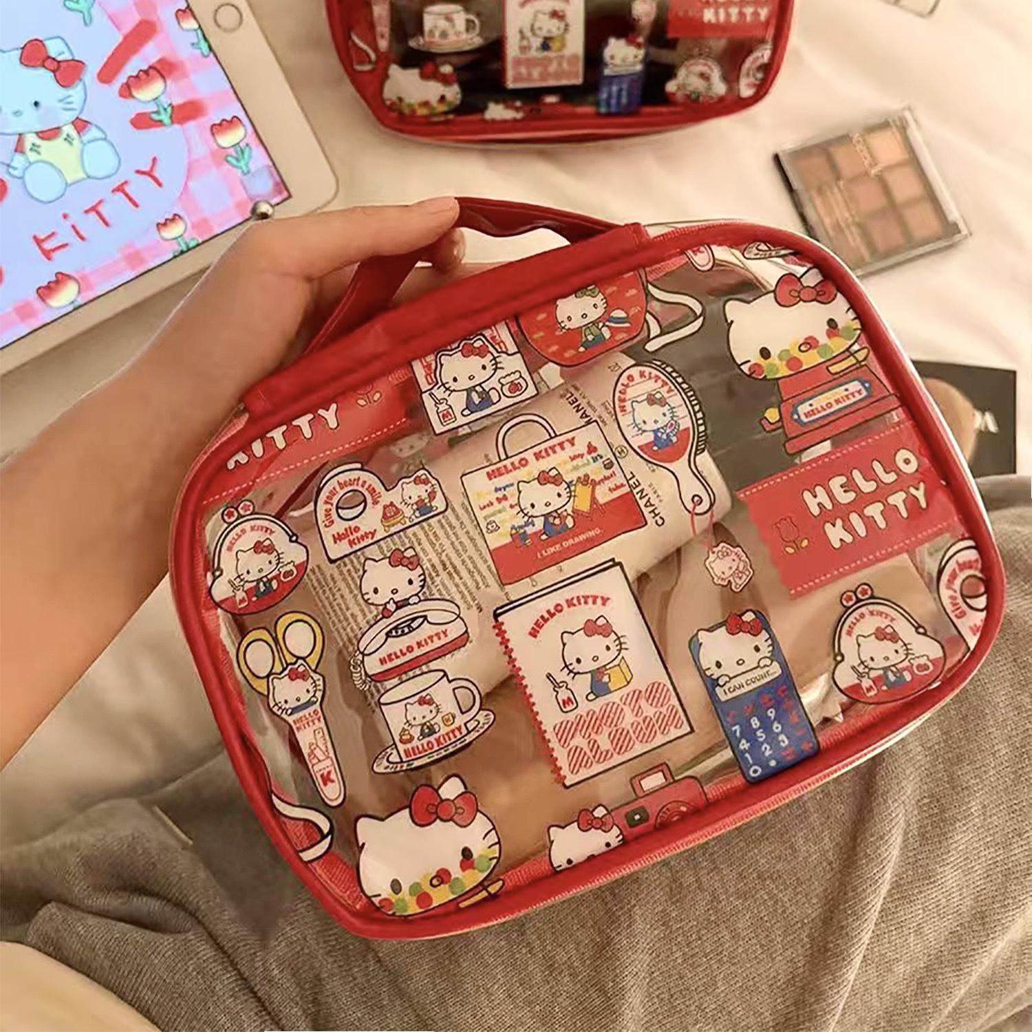 [당일/무배ෆ]키티 PVC 투명 메이크업 가방 휴대용 대용량 방수 파우치