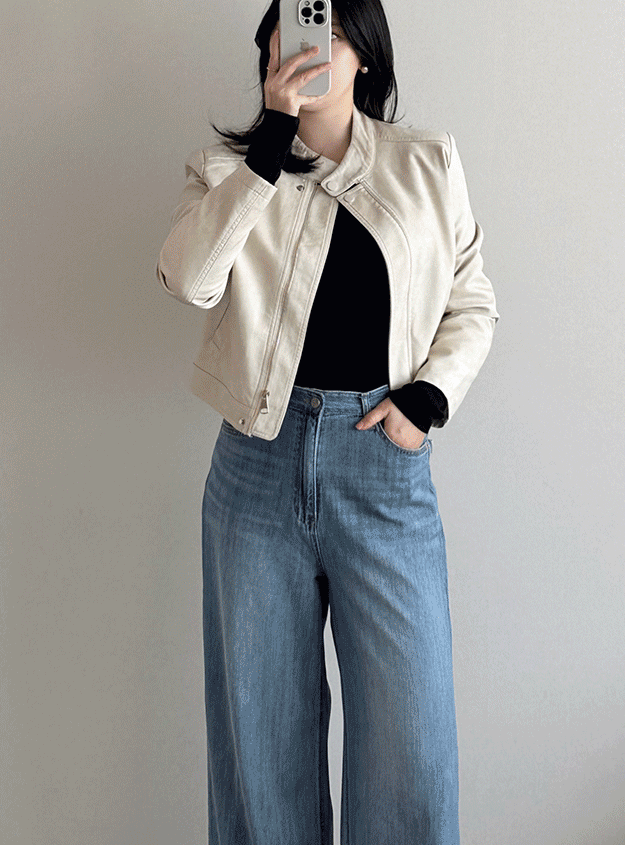 크롭 라운드 레더자켓