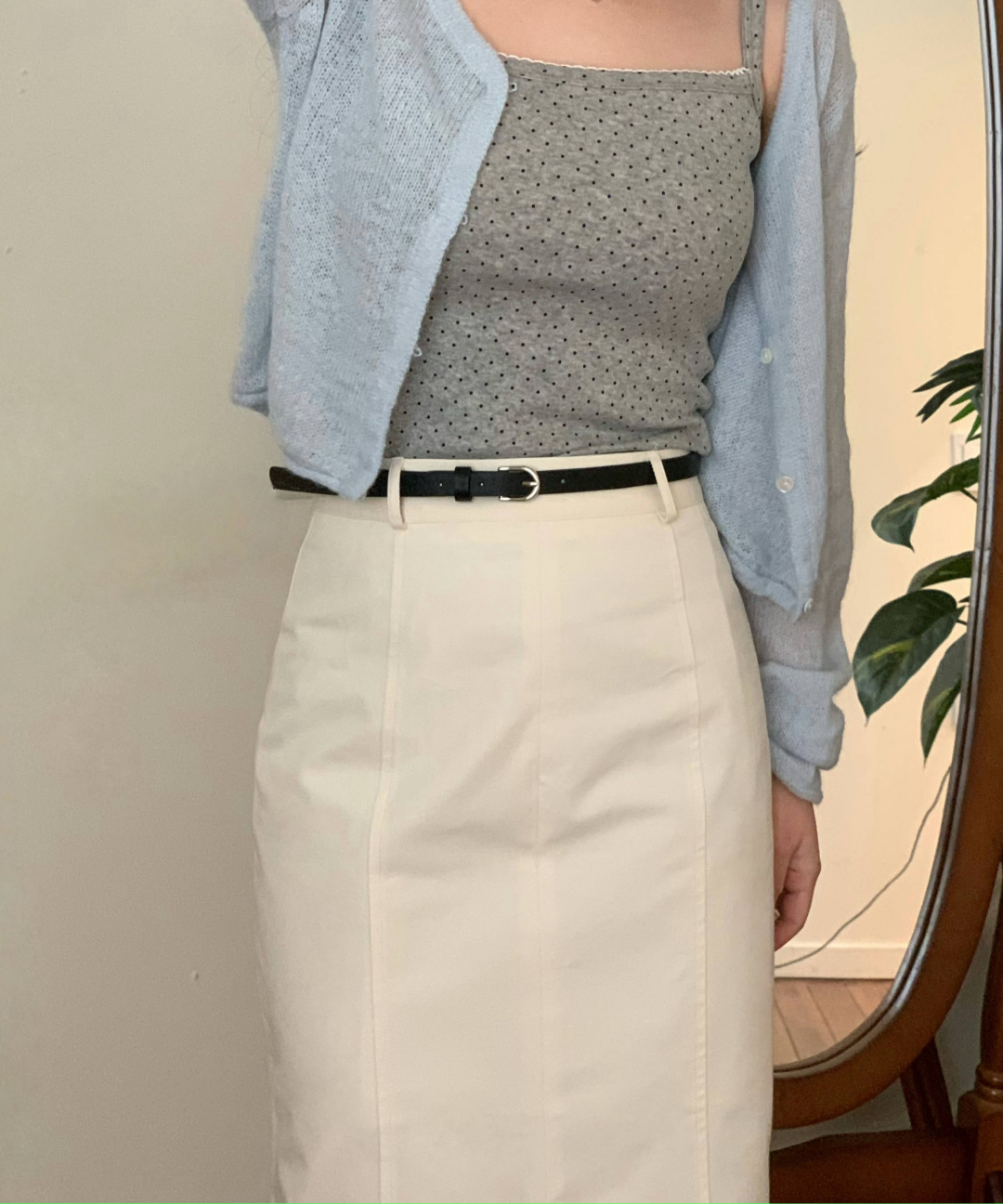 [벨트set✨] 코튼 트임 벨트 H라인 슬릿 롱스커트