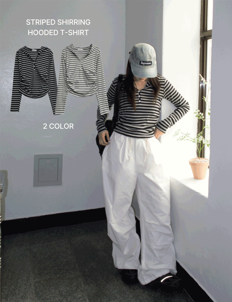 파인 스트라이프 셔링 후드 티셔츠 - 2 color