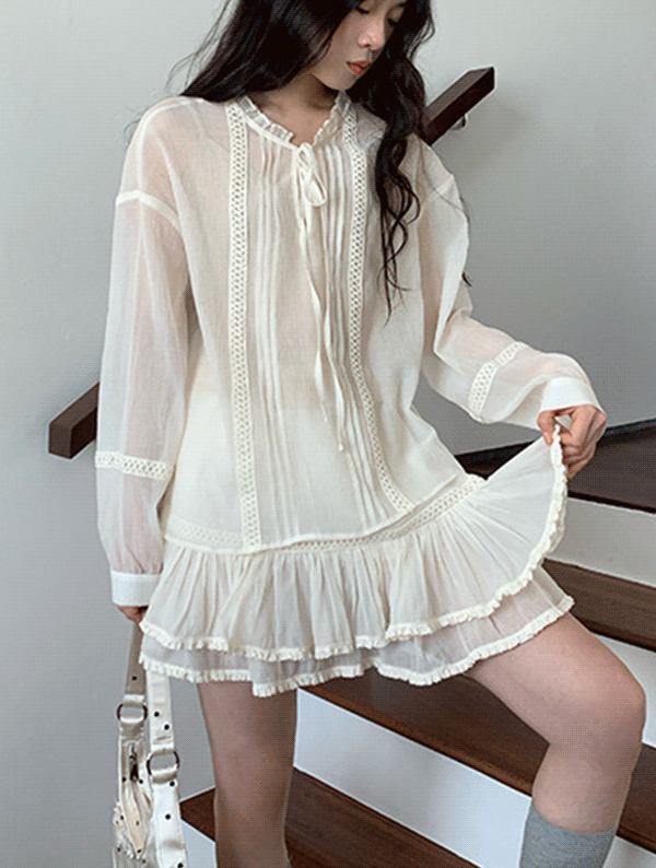 [여리핏✨] 에브앙 리본 타이 블라우스 프릴 미니 스커트 셋업 SET2266 봄 간절기 여름 쉬폰 동남아 수영복 레이어드 휴양지룩 하객룩 여행 휴가룩 공항룩 캠퍼스룩 페스티벌 축제룩