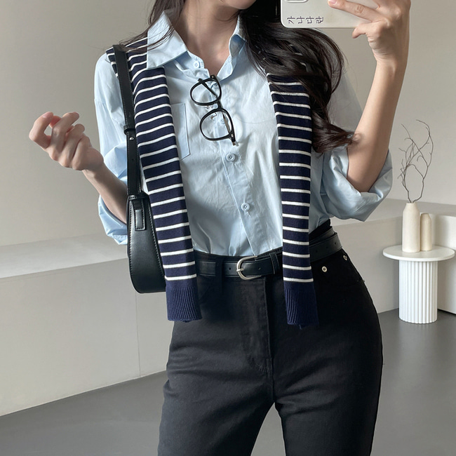 [숄세트💙/전직원추천] 가나다란 루키 스트라이프 숄 세트 레이어드 포켓 블라우스 셔츠 4color