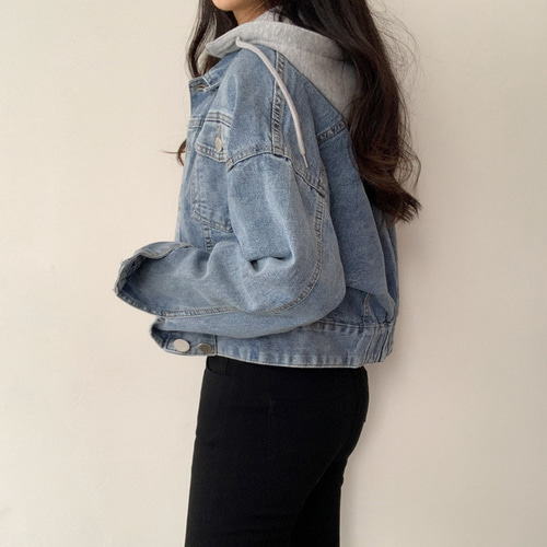 [후드탈부착가능/실패없는핏] 픽앤 크롭 후드 데님자켓 (2color)