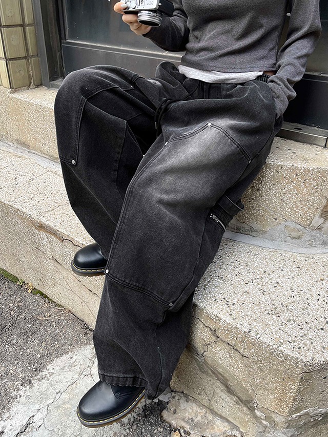 빅사이즈 S-2XL 바네트 스트링 와이드 카펜터 워싱 데님 밴딩 팬츠 청바지