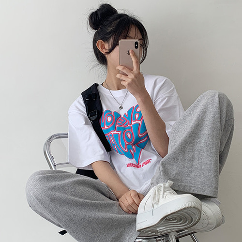 러픈 오버핏 레터링 트임 박스 반팔티 (3color) [빅사이즈/여름신상/여름티/썸머무드/흰티/면/페스티벌]