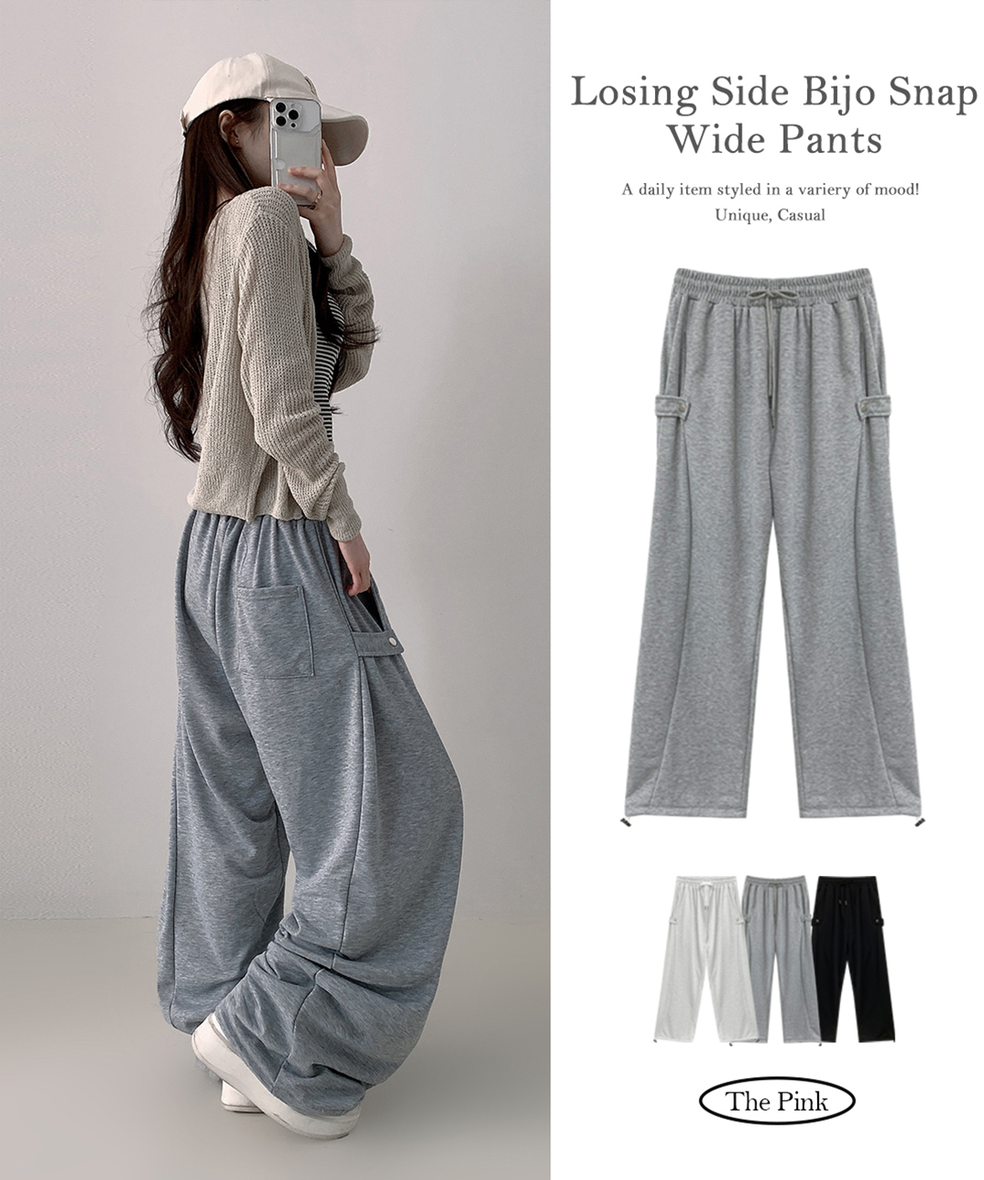 [조거핏O/휘뚤마뚤템!] 로싱 사이드 비조 스냅 와이드 밴딩 트레이닝 팬츠 (3color)