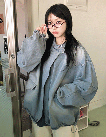 [박시핏/유니크] 오프빈 바이커 벌룬 데님 야상 청자켓
