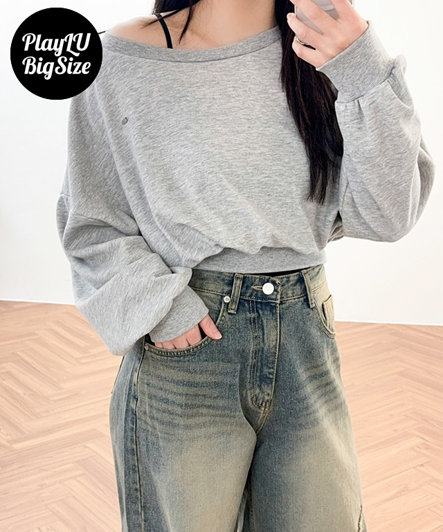 크롭 어반 오프숄더 맨투맨 (크림/블랙/곤색/메란지그레이)