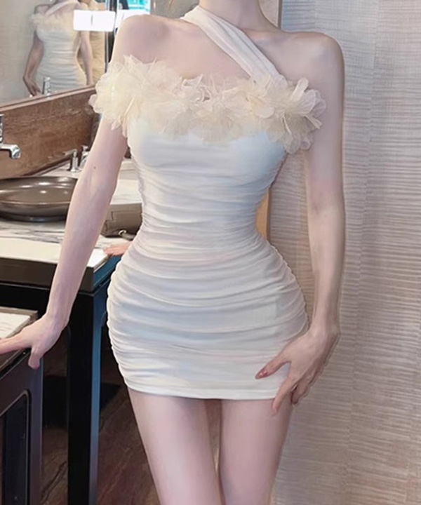플랑 언발 스트랩 슬림핏 셔링 러블리 미니원피스