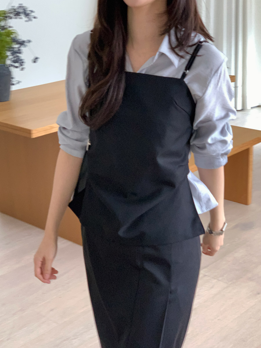 [당일배송] 아듀 레이어드 셔링 리본 스트랩 끈 나시 뷔스티에 탑 2color