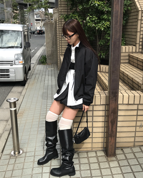 셔링 윈드브레이커 2col - black